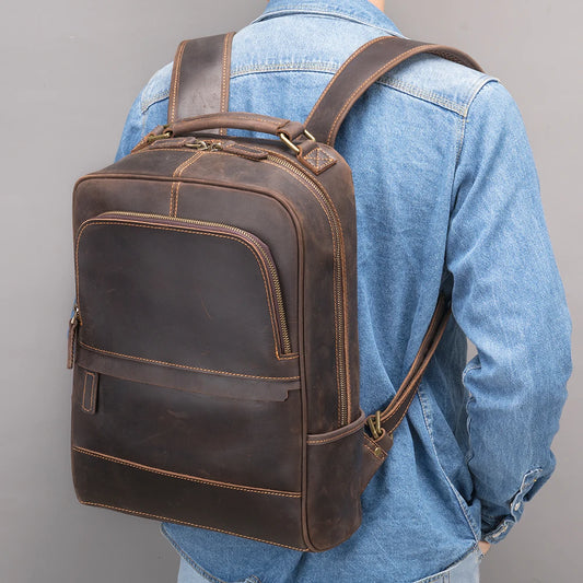 WESTAL Crazy Horse Leather Backpack Men Cowhide Leather Simple Backpack Fashion Travel Men Backpack Business Computer Bag