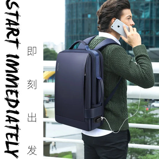 Men's Backpack PU Leather Bagpack Large 15.6" Laptop Backpacks Travel Multi Male Mochilas Black Schoolbag Hasp College Style