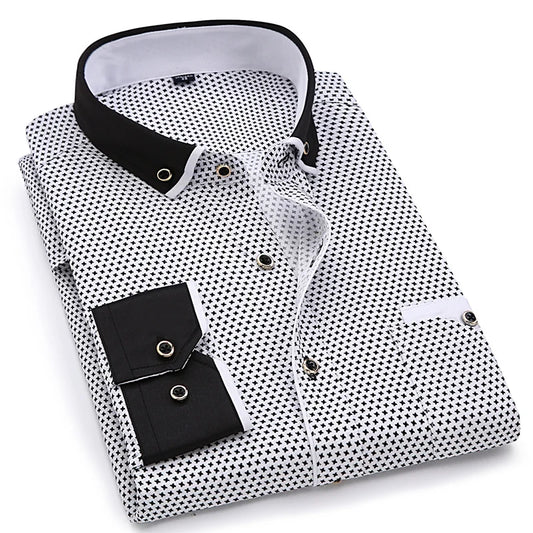 Men Casual Long Sleeved Printed shirt Slim Fit Male Social Business Dress Shirt Fashion Brand Men Clothing Soft Comfortable