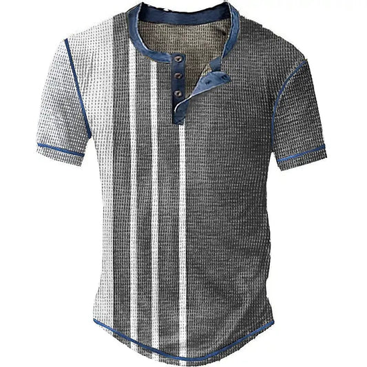 Striped Color Block 3D Printed Henley Shirts Men's Fashion Vintage Streetwear Button Short Sleeve T Shirt Tees Tops Man Clothing