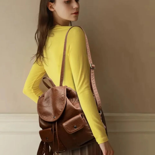 Anti-theft Backpack High Quality Purses Soft Leather Female Vintage School Bags Travel Outdoor Bagpack Ladies Bookbag Rucksack