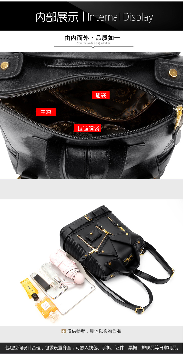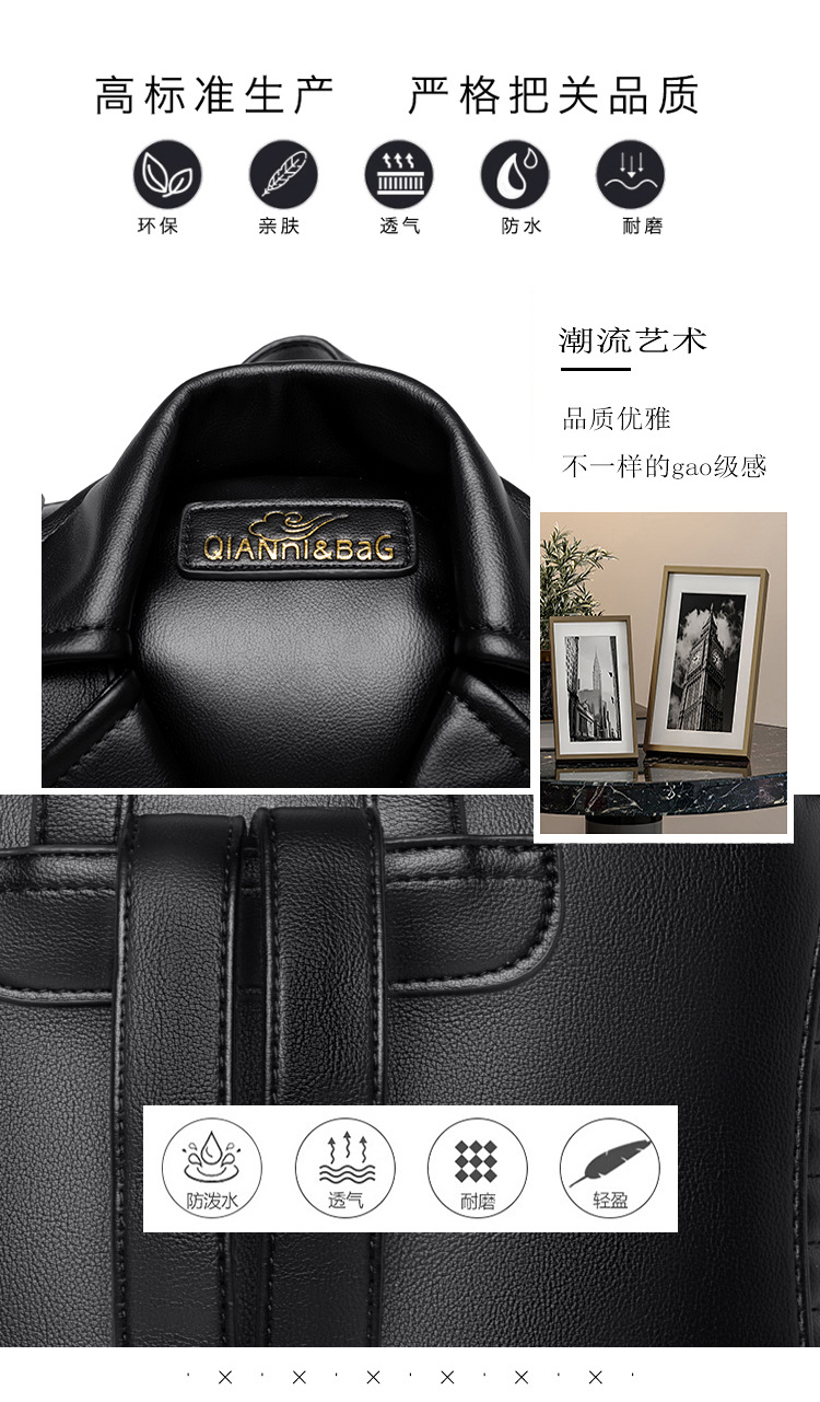 Women's backpack new PU soft leather large capacity black backpack fashion trend student class backpack versatile travel ba