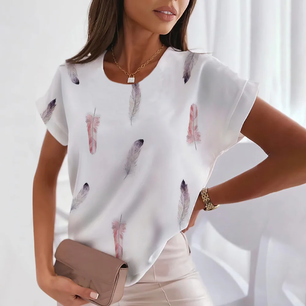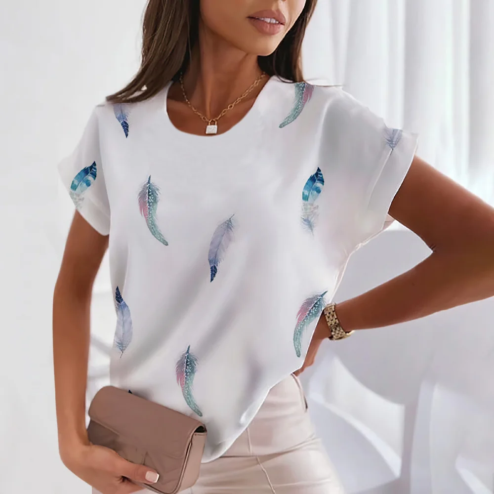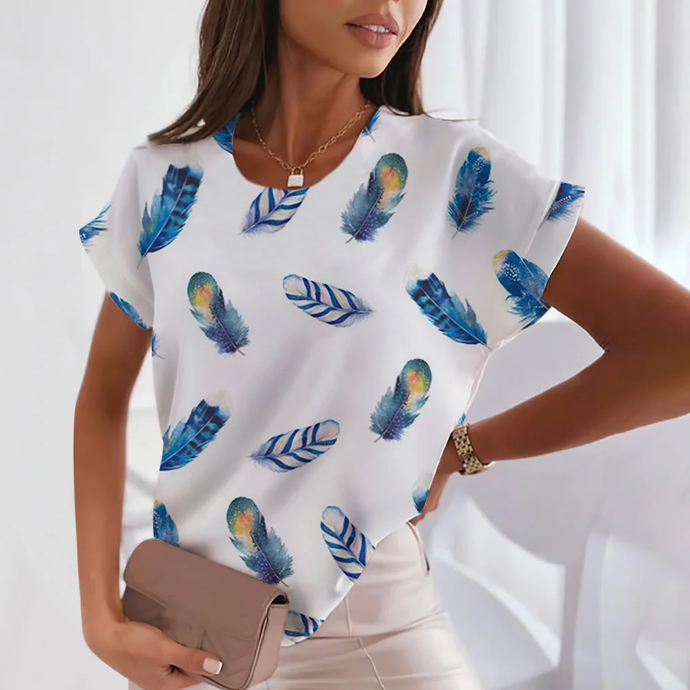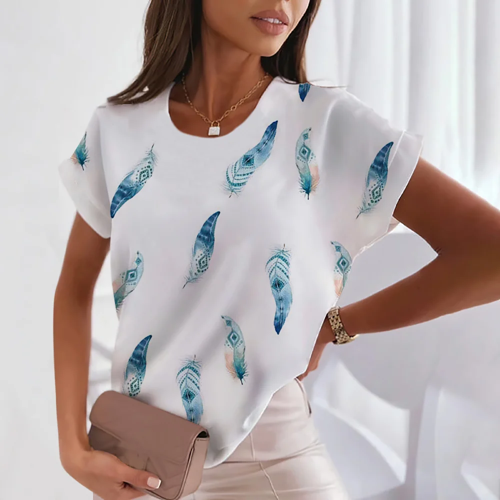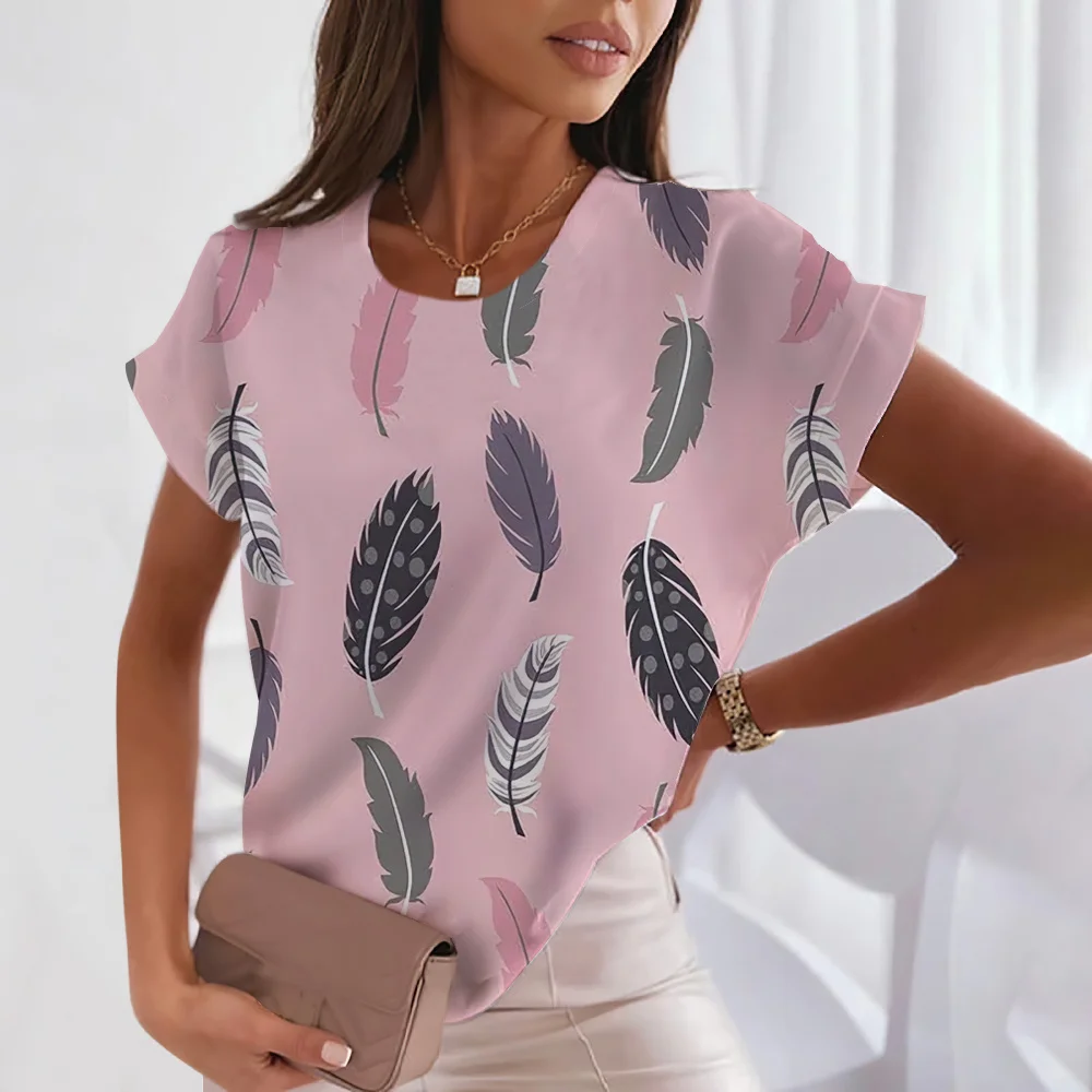Women's T-shirt 3d Feather Print V-neck Tops Summer New Simple Harajuku Short-sleeved Fashion Loose Large Size Women's Tops