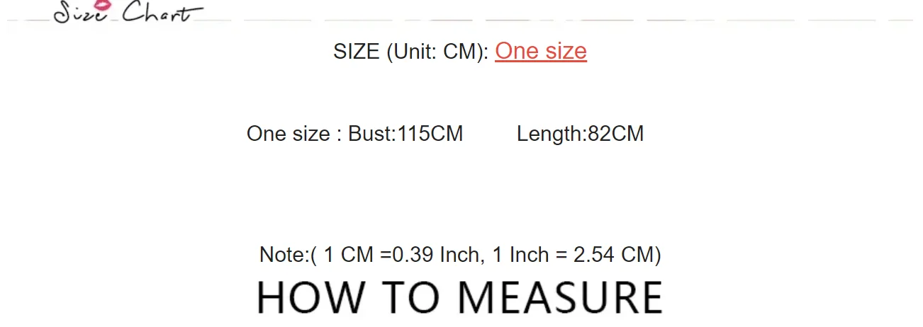 Sizing: One-size-fits-all elasticated waistbandWaist circumference: 60-90cmHips are not limitedSkirt length: 75cmmodname=ckeditor