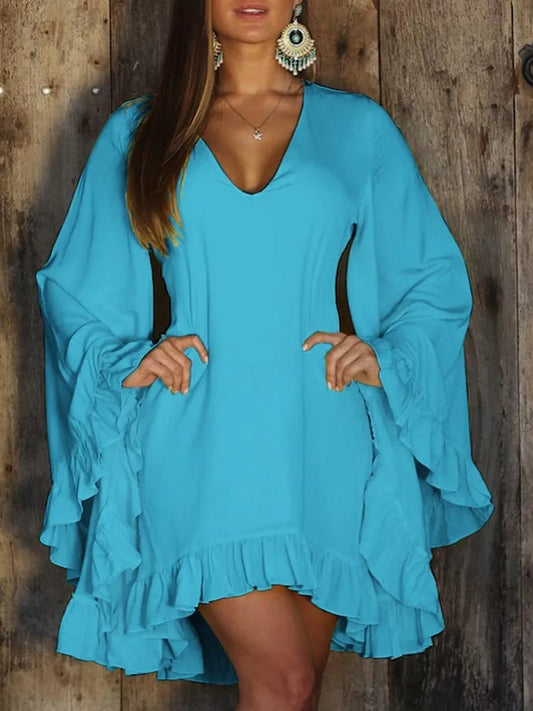 new multi colored summer women's clothing fashionable temperament casual commuting lotus leaf sleeve elegant dress