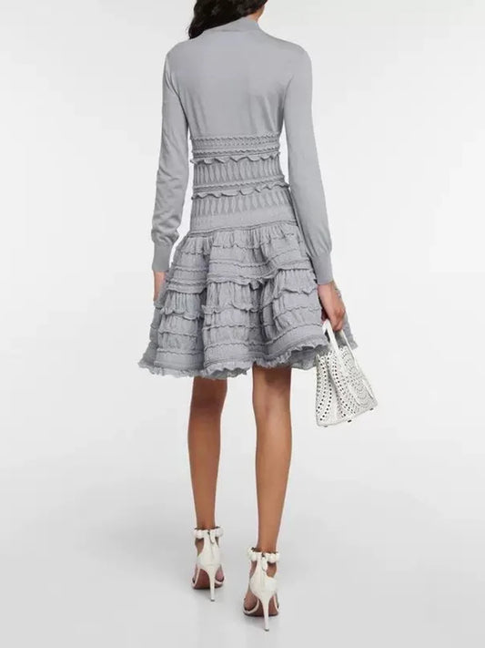 Long-sleeved high-neck knitted dress Wool blend elastic slim-fit women's dresses temperament High street cake dress new