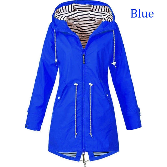 Fashionable women's windproof and waterproof trench coat Long sleeved coat Casual pants Zipper hooded raincoat S~5XL