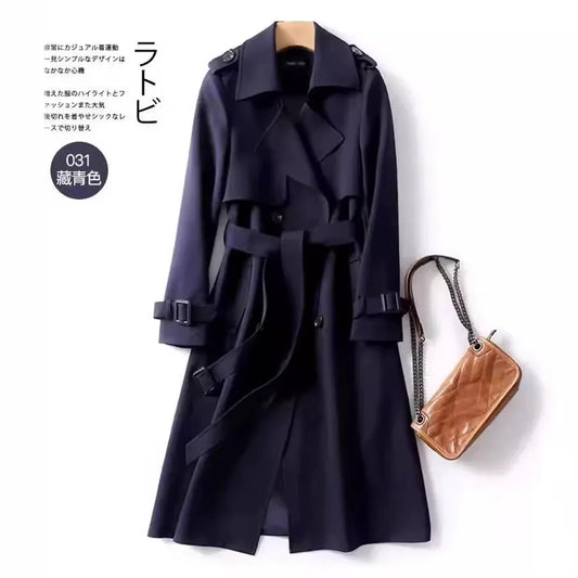 Windbreaker Women's Mid-length Spring And Autumn New Solid Color Small Popular British Style Coat Over The Knee Coat