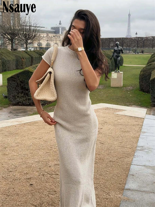 Short Sleeve Elastic Waist Large Hem Women Dress Sexy Off Shoulder Solid Color Long Dress Ladies Clothing