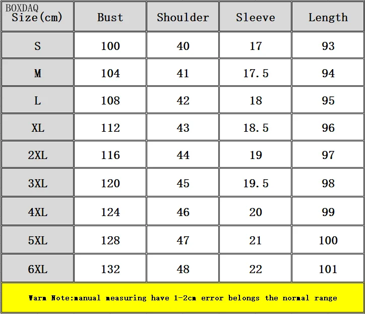 There are 6 sizes for you to choose, including S, M, L, XL, 2XL, 3XL.