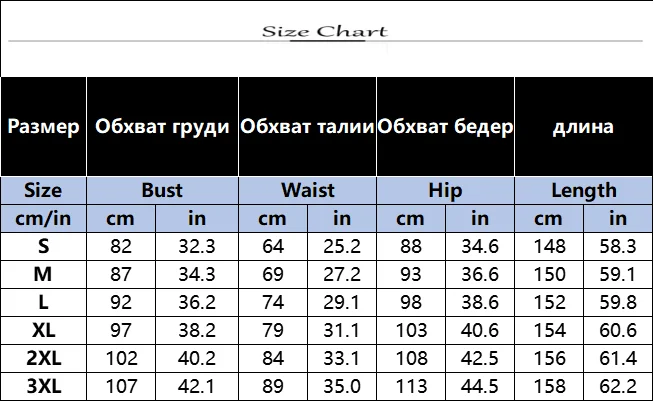 Size: 2XL, Bust: 118cm/46.5", Waist: 84cm/33.1", Length: 139cm/54.7" (Approx.)