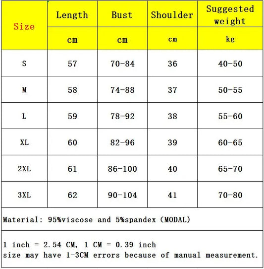 Size/Tag Bust Length Sleeve Cm/Inch Cm Inch Cm Inch Cm Inch S 94 36.66 90 35.10 47 18.33 M 98 38.22 91 35.49 48 18.72 L 102 39.78 92 35.88 49 19.11 XL 106 41.34 93 36.27 50 19.50 2XL 110 42.90 94 36.66 51 19.89
