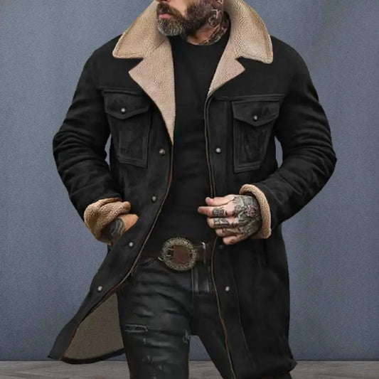 Long Trench Coat Double-breasted Solid Color Autumn Winter Windproof Thick Jacket for Daily Wear