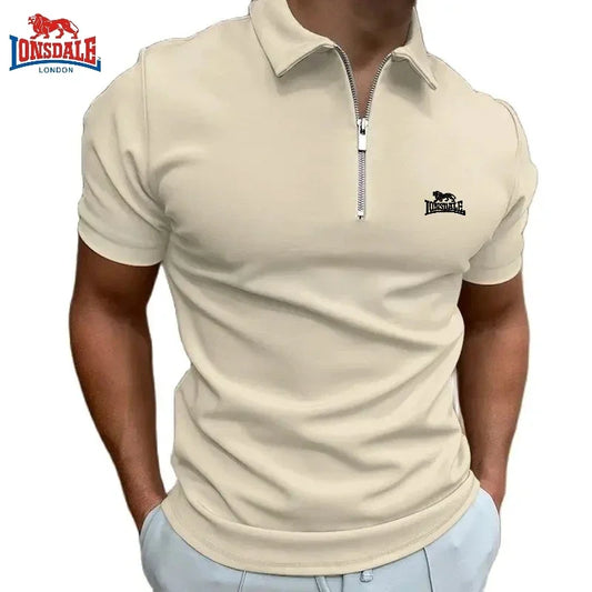 New Summer Men's Exquisite Embroidered Short Sleeve Zipper Collar Shirt, Luxurious, Fashionable, Casual, Multi Functional Top