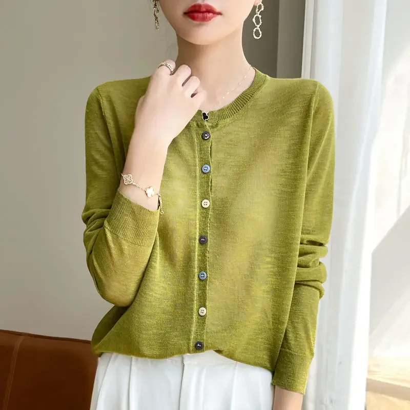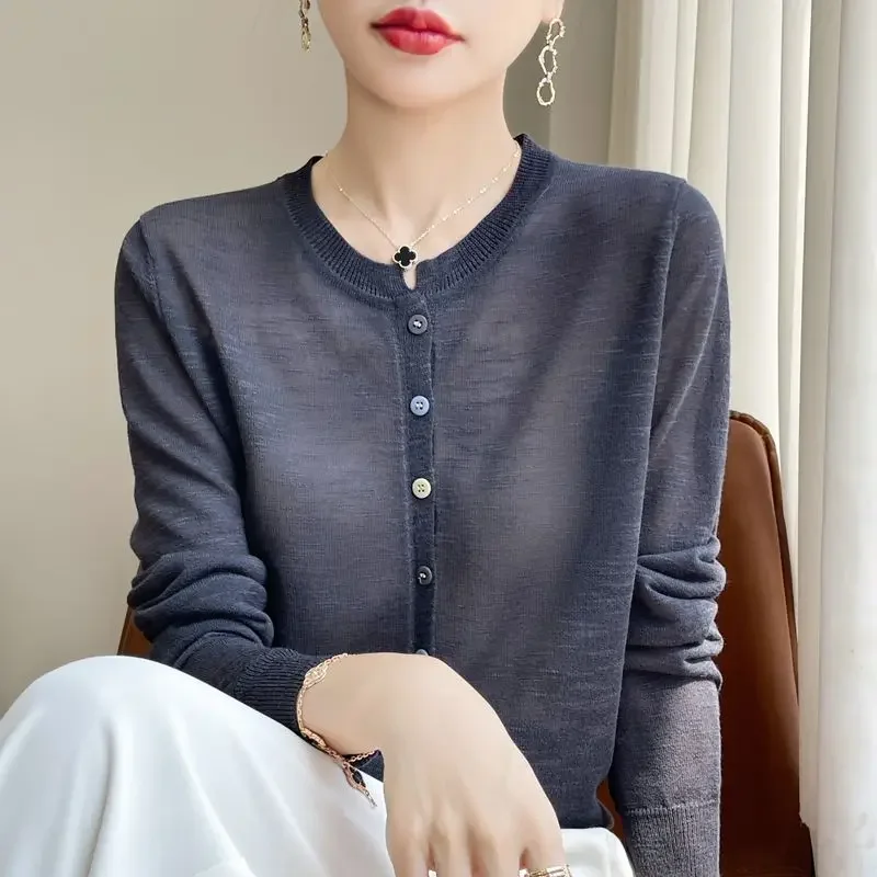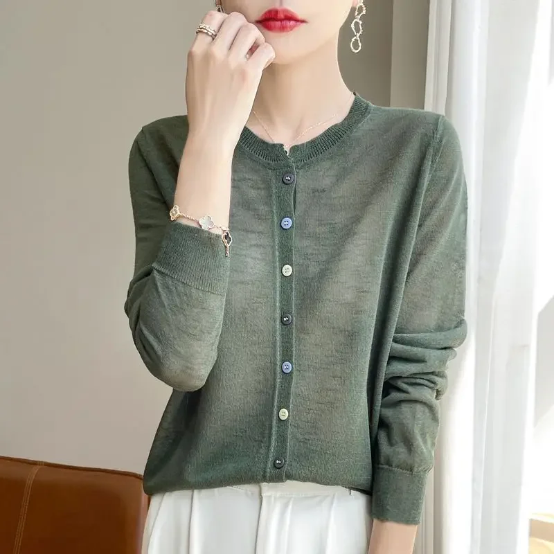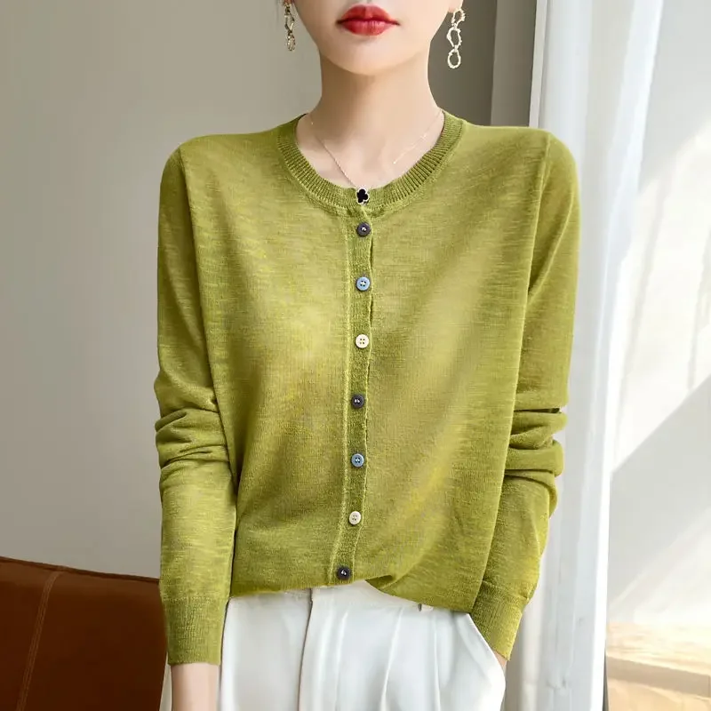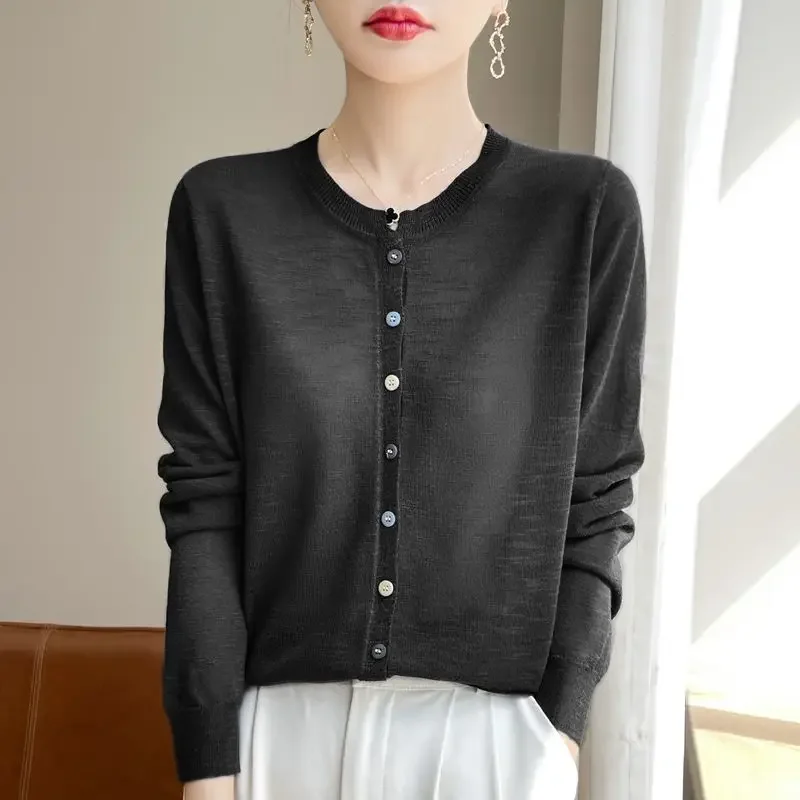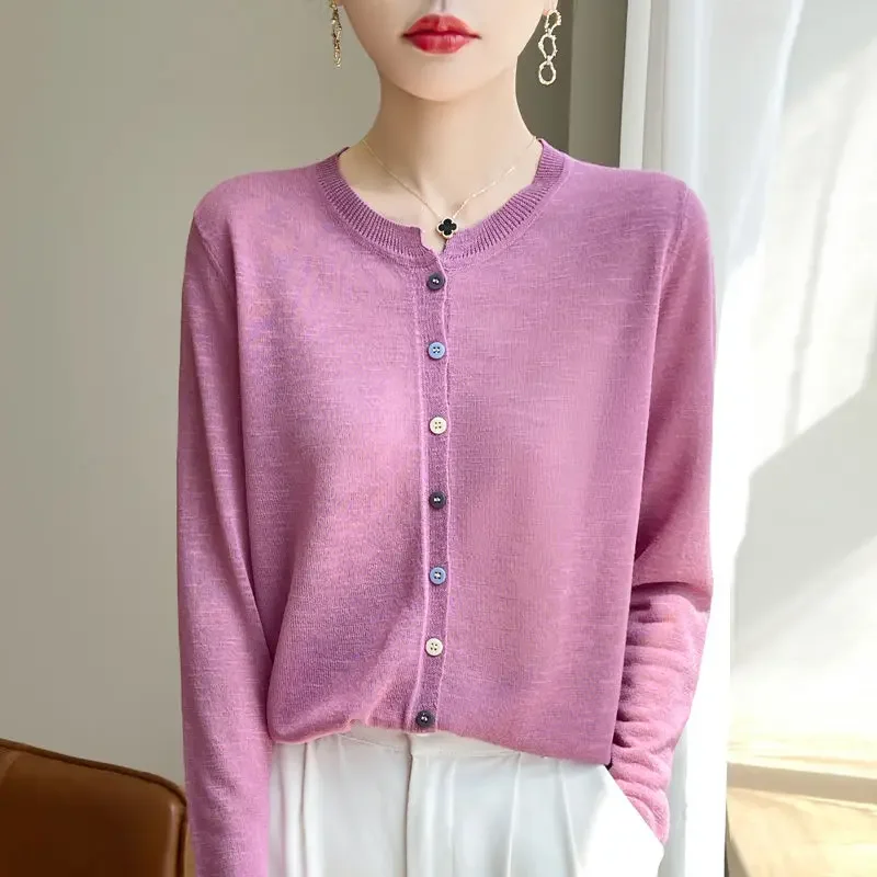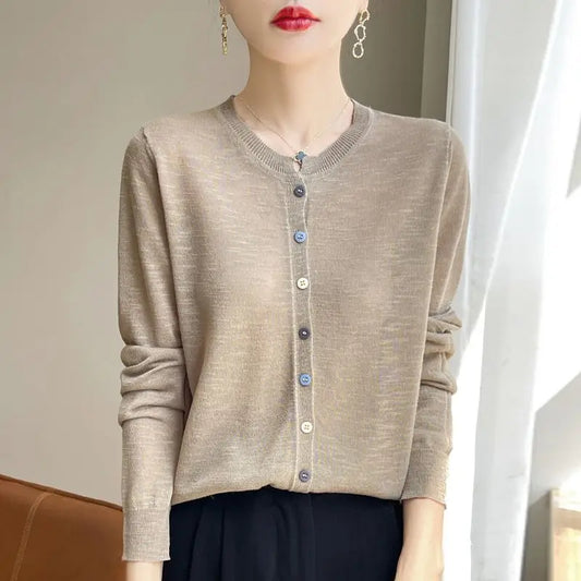 Autumn Winter Women New O-neck Solid Knitted Cardigan 100% Merino Wool Sweater Casual Cashmere Knitwear Long Sleeve Soft Tops