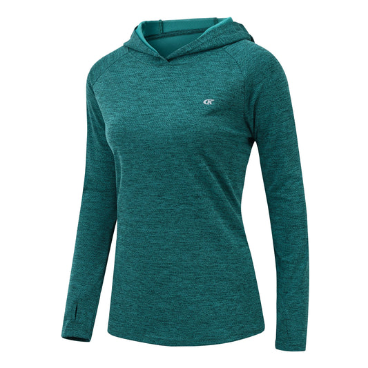 Women's UPF 50+ Long Sleeve Casual Hoodie Shirts, Rash Guard Solid Color Tops Lightweight Breathable Pullover Outdoor Sports
